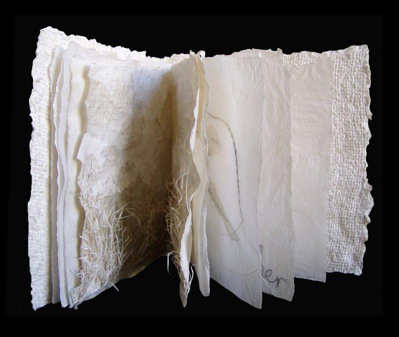 9 x 7.5 x 2 in. (closed), 2012 Charcoal, ink, thread and collage on handmade abaca, linen and cotton paper