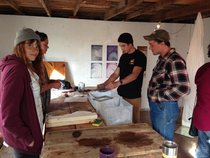 Papermaking with local visitors using cornhusks and grass during Art Harvest Papermaking with a few fellow residents: Nicole, Tessa, Cameron, and Daniel Salomon