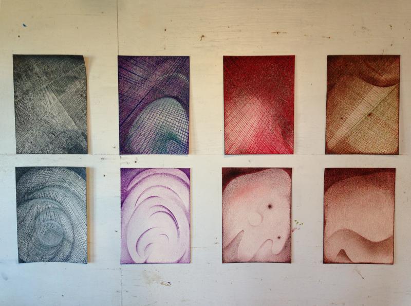 Art Farm meditations in progress - ink, watercolor, and pastel on paper