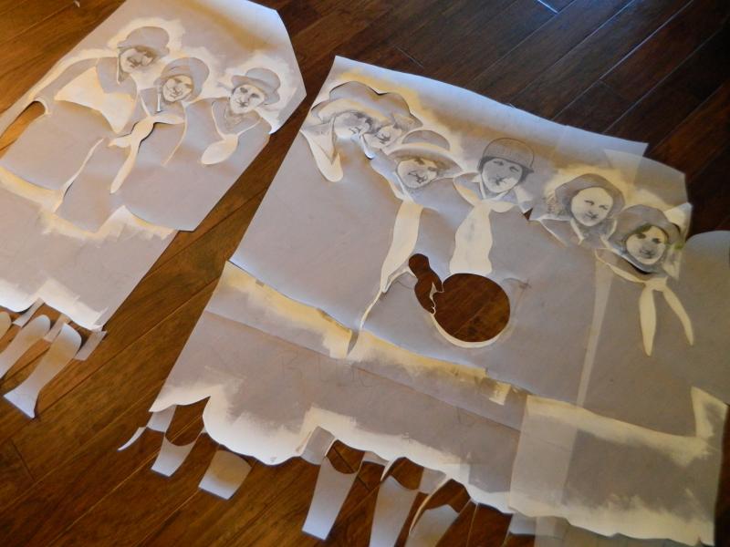 Drawn stencil used for the west side of Balfour Packing Shed. Each little piece was removed and then replaced as each different value of rusty red brown was rolled on.
