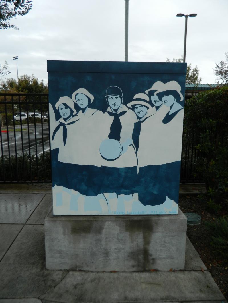 Liberty Basketball shows the 1921 Liberty Union High School girls’ basketball team. Located at the gate of Sunset Park, the work simultaneously harkens back to the roots of Brentwood’s athletic and recreational past while inspiring passersby - especially young girls - to pick up a sport be it basketball, baseball, etc.