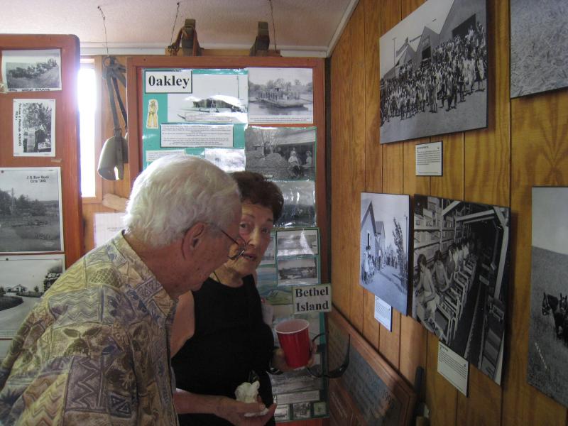 My grandparents, Billie and Bearl Casey, at the East Contra Costa Historical Society telling me about the history of Balfour, Guthrie, and Company with a print of the original photo on the wall above.