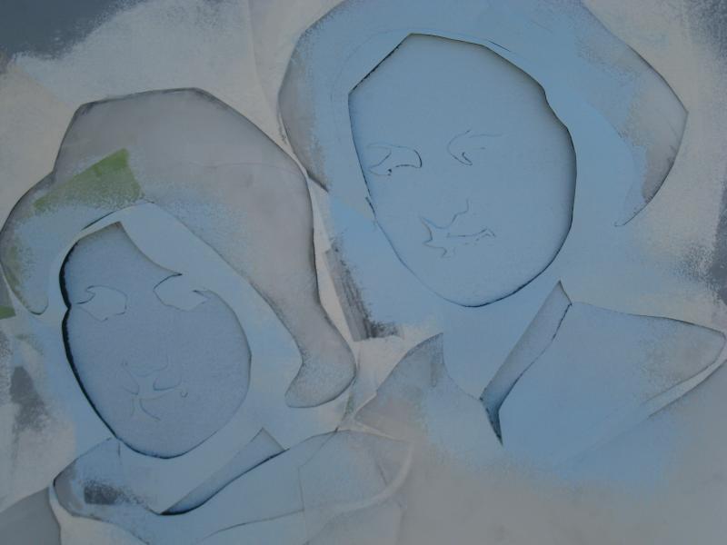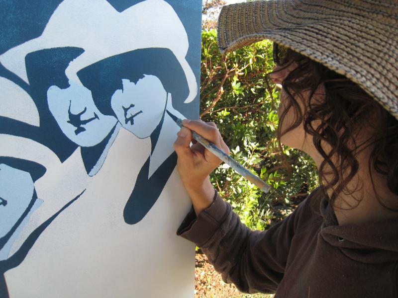 My mom, Jody Casey, and grandma, visiting and helping me place the stencil.