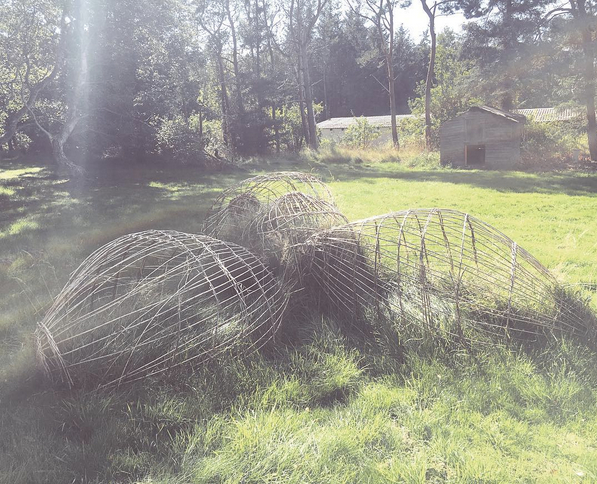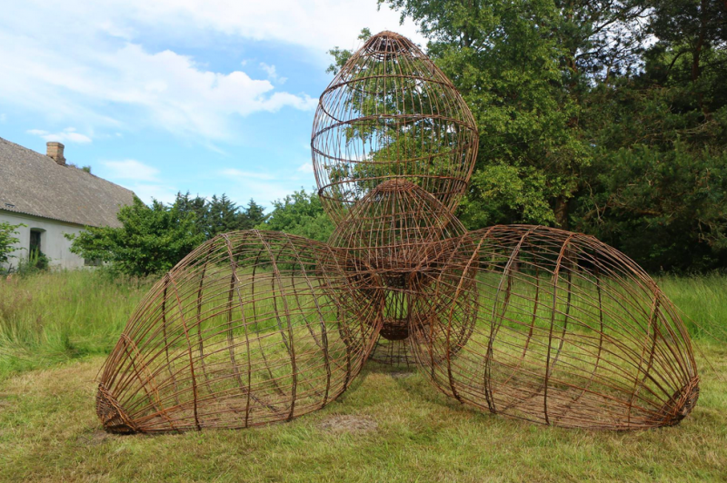 In 2015, Anna Lise invited me back to Fjellerup to participate in Fjellerup i Bund & Grund at Ruth's Have (Garden). She proposed, organized, and created a month of programming and sculpture in Ruth's Have, the garden of the late Ruth Nielsen of the Nielsen family of fishermen on Fjellerup Beach. Under the theme of art and ecology, Anna Lise invited me to make a garden sculpture that could later be moved by the municipality. The ensuing work, Vandmolekyle (water molecule) draws from local knowledge, experience, and hands-on, practical techniques to depict a fantastical vision of that which we take for granted.