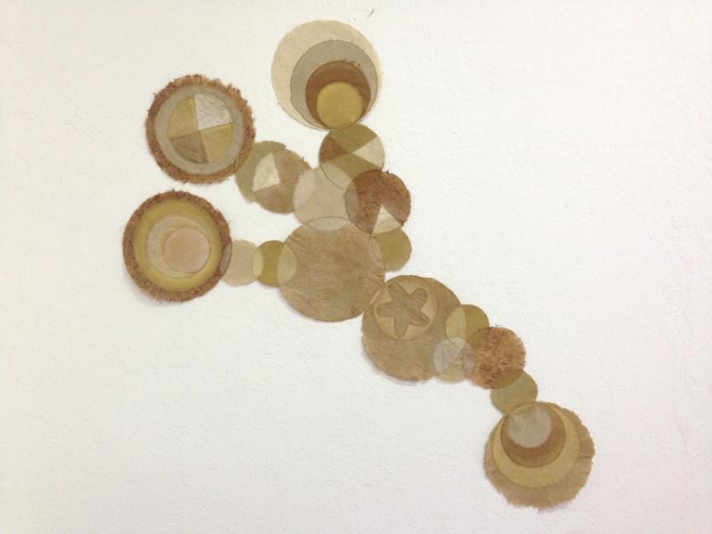 Pastel and thread on handmade kapok, pineapple, banana, snake plant, canna lilly, grass, corn, and recycled katupa paper