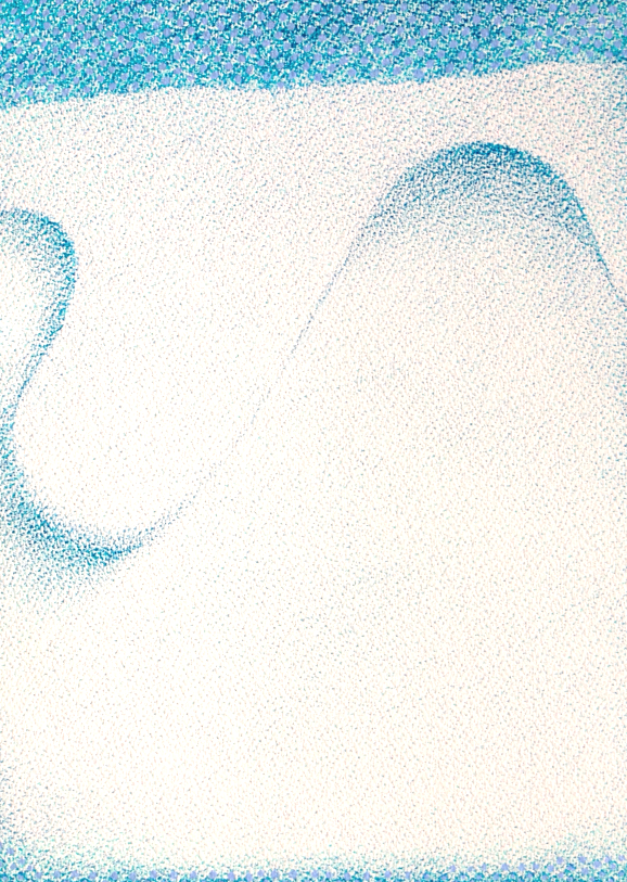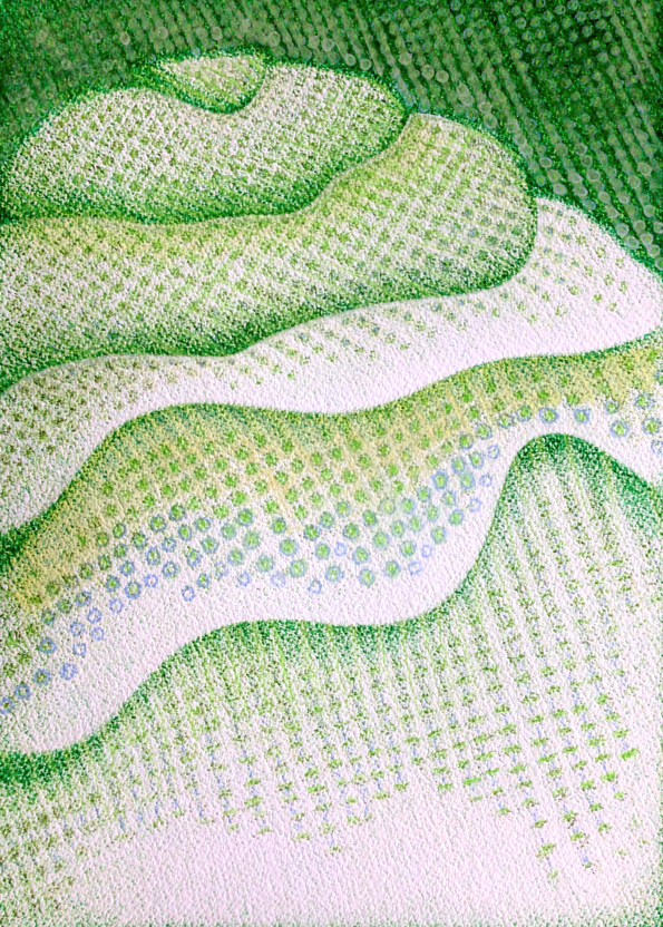 I arrived on Watch Hill September 18th with the last ferry of the season; the solitude was ovewhelming and addicting. Each morning, I would sit down with one color change felt-pen, one pastel pencil, and two 14 x 10 in pieces of watercolor paper and begin to simply make lines on the paper, over and over, from top to bottom. Listening to ambient sounds (the sea, the wind, the rain, crickets) I would continue making lines until the ink had run out. Like seeing images in clouds, forms and lines would appear; the distribution of values representing the logic of sand, wave, or storm cloud formations.